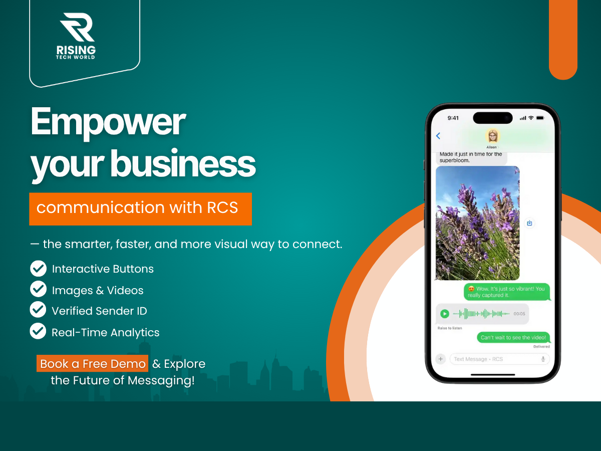 At Rising Tech World, we help businesses elevate customer communication with Rich Communication Services (RCS) Messaging β the modern evolution of SMS. With RCS, your brand can send interactive, branded,media-rich, and verified messages that deliver an engaging and secure experience directly to customersβ phones.